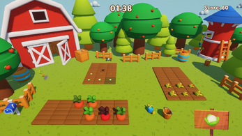 - Audio system (AudioSource + clips): used to give sound feedback when planting, harvesting, changing seeds, and losing points, as well as a background music.